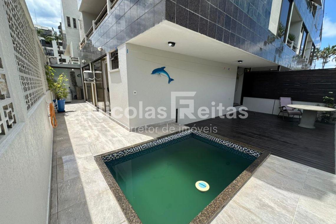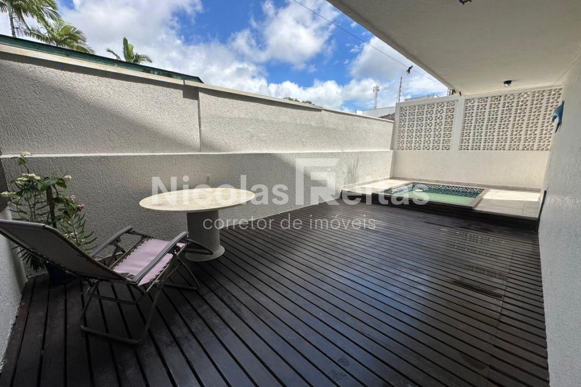 • Área externa exclusiva com piscina e solário, estilo trapiche nos fundos