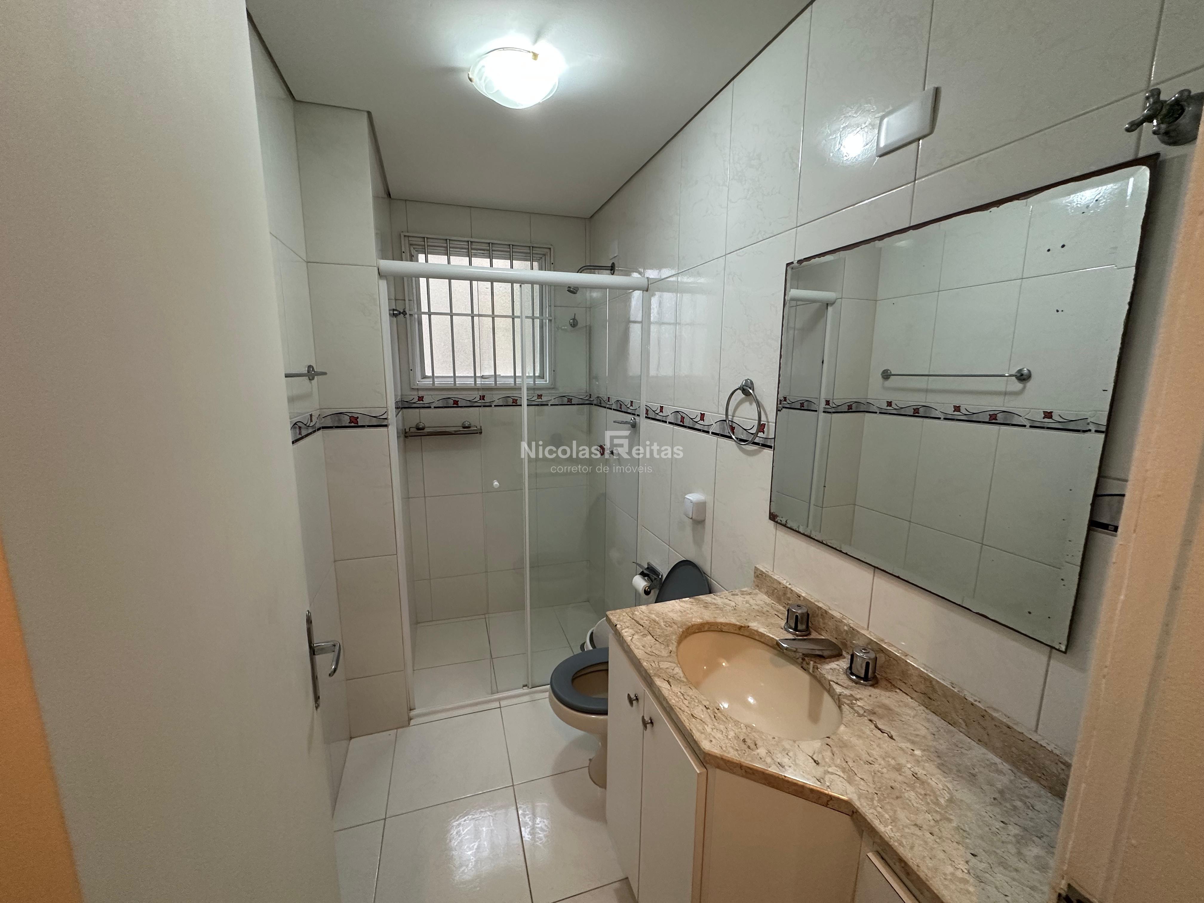 - Banheiro social: Com box em vidro e ventilação natural.
