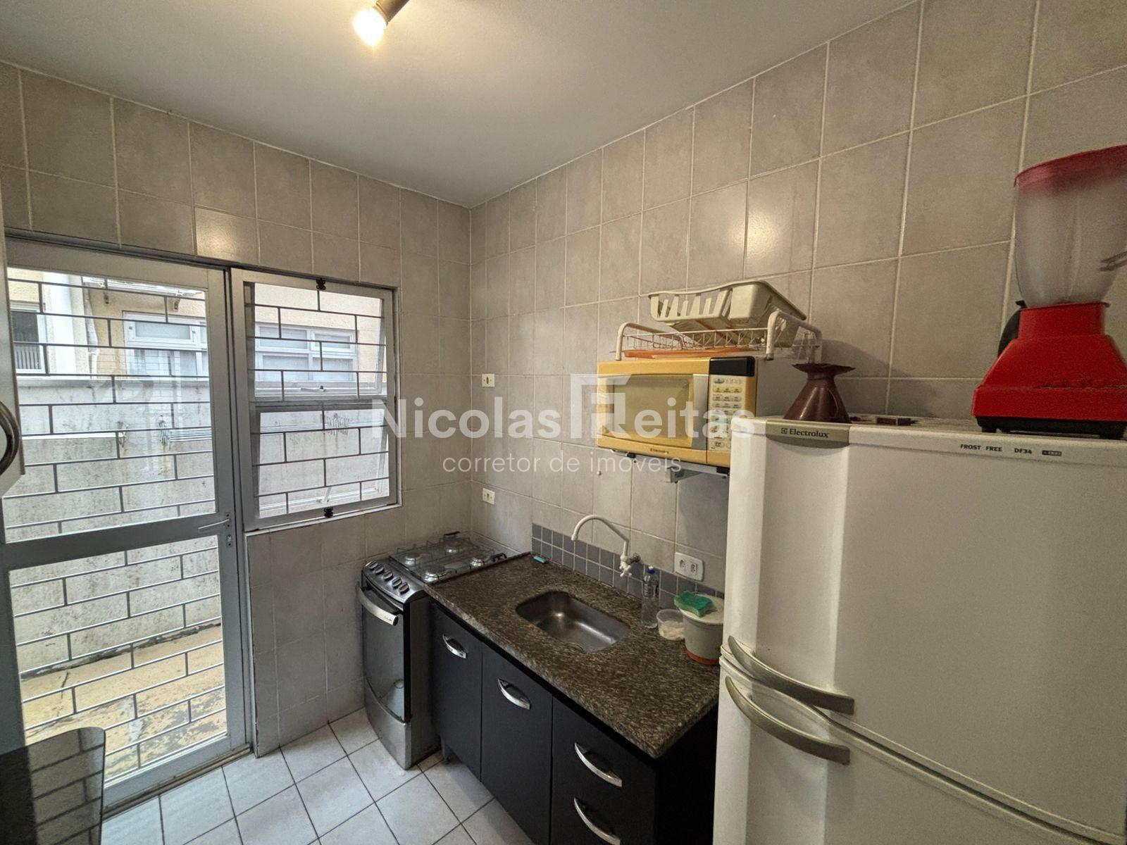O studio conta com ambiente integrado, unindo sala e dormitório, proporcionando um espaço funcional e bem distribuído. Possui ar-condicionado, cozinha completa, área de serviço e uma agradável varanda com churrasqueira, perfeita para momentos de lazer.
